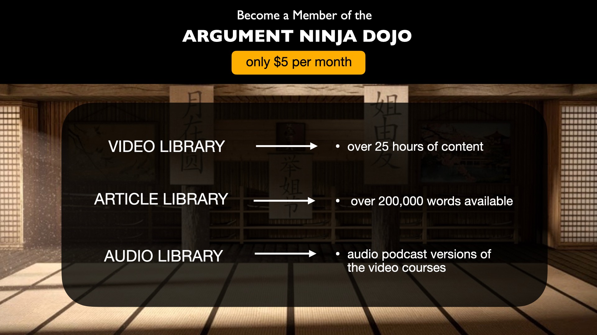 Here’s what you get when you become a supporter of the Argument Ninja Dojo.